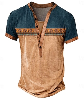 Męskie Plemienny Etnické Podkoszulek Koszula Henley Koszulki Krótki rękaw Designerskie Podstawowy Etniczne Na zewnątrz Codzienny Sport Lato Zielony Granatowy Brązowy Henley Koszulka Henley