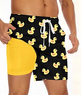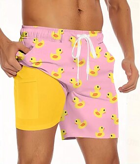 Męskie Śmieszne Kaczka Liść palmowy Szorty podszyte Spodenki kąpielowe 2 w 1 Szorty kąpielowe Średni Talia Hawajskie Urlop Święto Stroje plażowe Boczne kieszenie Z wkładką kompresyjną Elastyczny pas