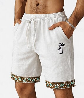 Męskie Szorty Lniane szorty Letnie szorty Szorty plażowe Ściągana na sznurek Elastyczny pas Graficzny Drzewo kokosowe Lekki Oddychający Do kolan Codzienny Plaża Święto Urlop Hawajskie Czarny Biały