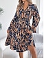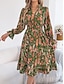 Damskie Sukienka midi Codzienne sukienki Sukienki w stylu boho Bohema Moda miejska Linia A Urlop Ulica Święto Luźna Kwiaty Długi rękaw W serek Khaki Lato Wiosna