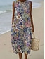 Damskie Sukienka midi Sukienka A line Urlop Codzienny Na zewnątrz Wyjściowe Luźna Kwiaty Bez rękawów W serek Niebieski Zielony Lato Wiosna