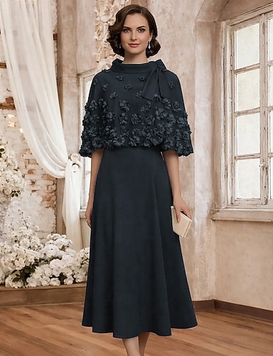 Sukienka A-Line na długość kostek sukienka do kolan czarna sukienka sukienka na przyjęcie sukienka koktajlowa sukienka matki panny młodej sukienka z krótkim rękawem okrągły dekolt elegancka vintage
