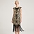 Ryczące 20s 1920 roku Południe Sukienka Sukienka w stylu lat 20-tych Krótkie rękawy Wielki Gatsby Dama Gość weselny Cekiny Frędzel Łódeczka Strój na bal maskowy Damskie Karnawał Bal maskowy Wieczorna