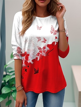Damskie Podkoszulek Nadruk Graficzny Zwierzę Zabytkowe Elegancki Klasyczny Krótki rękaw Półgolf Zwykłe topy Codzienny Weekend Niebieski Biały Fioletowy Zielony Khaki Lato Wiosna