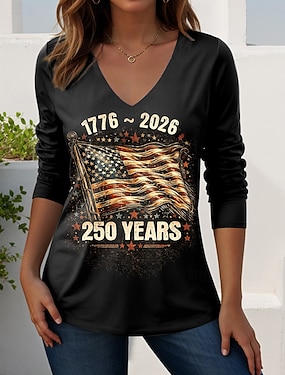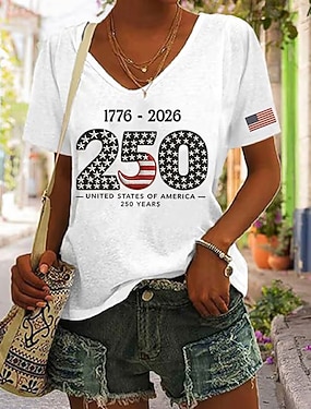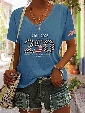 Dzień Niepodległości Amerykański Rocznica Patrioty Kobiecym T-shircie Graficznym Flagą Literą Vintage Mody Stylowym Krótkim Rękawie Okrągłym Dekolcie Codziennym Weekendowym Nadrukiem