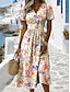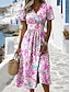 Damskie Sukienka midi Sukienka A line Urlop Codzienny Boho Regularny Kwiaty Graficzny Krótki rękaw W serek Niebieski Żółty Czerwony Fioletowy Lato Wiosna