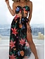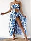 Damskie Stroje kąpielowe Bikini Trzyczęściowy Majtki Kostium kąpielowy Z marszczeniami Urlop Stroje plażowe Kwiaty Graficzny W serek Bez rękawów Kostiumy kąpielowe