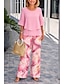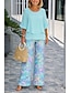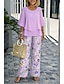 Damskie Zestawy spodni Rękaw 1/2 Motylkowy Okrągły dekolt Kwiaty Graficzny Elegancja Urlop Codzienny Plaża Niebieski Rumiany róż Fioletowy Wiosna i lato Luźna