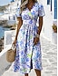 Damskie Sukienka midi Sukienka A line Urlop Codzienny Boho Regularny Kwiaty Graficzny Krótki rękaw W serek Niebieski Czerwony Fioletowy Zielony Lato Wiosna