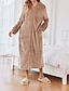 Damskie Piżama Szata Moda Codzienny Czyste kolory Kieszeń Urlop Dom Łóżko Długi rękaw Klapa Rumiany róż Granatowy Brązowy Szary Jesień Zima Dopasowana Regularny
