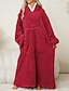 Damskie Piżama Szata Moda Czyste kolory Kieszeń Urlop Dom Codzienny Długi rękaw Bluza Rumiany róż Niebieski Fioletowy Zielony Szary Jesień Zima Dopasowana
