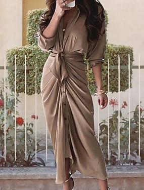 Damskie Sukienka midi Sukienka ołówkowa Elegancja Urodziny Kwiaty Rękaw 3/4 Kołnierzyk koszuli Granatowy