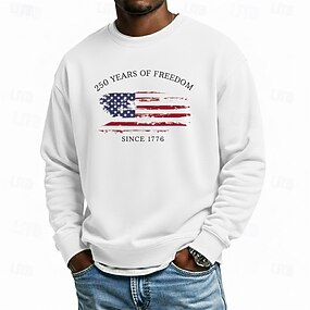 Męska bluza z nadrukiem z amerykańską flagą z okazji 250. rocznicy, sportowa, modna, codzienna, klasyczna, z okrągłym dekoltem, na zewnątrz, na wakacje, różowa, czerwona, zielona, szara, z nadrukiem,