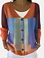 Damskie Sweter sweter Elegancki Codzienny Miękkie Panterka Kolorowy blok Prążkowany W serek Niejednolita całość Długi rękaw Zwykłe topy Robić na drutach Codzienny Wyjściowe Weekend Rumiany r
