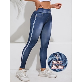Damskie Jeansy Getry Jegginsy Moda miejska Codzienny Pełna długość Średia talia Równina Kieszeń Elastyczny pas Wygodne Średnio elastyczny Na zewnątrz Urlop Ulica Niebieski Czarny Wiosna Jesień Luźna