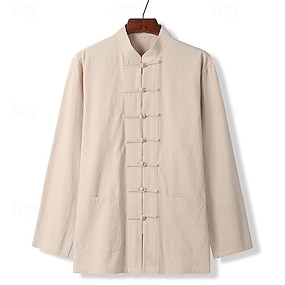 Męskie Koszula z kołnierzykiem chińskim Koszula z kołnierzykiem typu stójka Koszula bawełniano-lniana Równina Urlop Codzienne Czarny Biały Jasnozielony Ciemnoniebieski Długi rękaw kołnierz dziadka