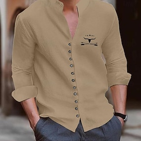 Męskie Koszula Koszula lniana Letnia koszula Stroje plażowe Zapinana na guziki koszula Równina Urlop Codzienny Czarny Biały Khaki Szary Długi rękaw Wieczorne Lato Wiosna Odzież
