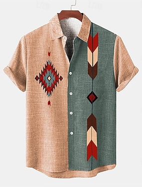 Męskie Koszula lniana koszula koszule w stylu retro Koszula w stylu vintage Koszula etniczna Plemienny Codzienny Rumiany róż Niebieski Khaki Krótki rękaw Wieczorne Lato Wiosna Odzież