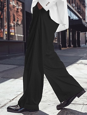Męskie Garnitury Lniane spodnie Spodnie Letnie spodnie Plisowane spodnie Przednia kieszeń Prosta noga Równina Komfort Oddychający Pełna długość Codzienny Święto Moda Moda miejska Czarny Biały