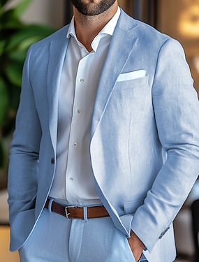 Męskie Lniana marynarka Sportowy płaszcz Kołnierz z wycięciem Moda Codzienny Solidne kolory Blazer Błękit nieba Luźny / a Jednorzędowa, jeden guzik