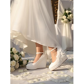 Damskie koktajl Studniówka Wieczorna impreza Klamra Haft nakładany Platforma Okrągły palec u nogi Elegancja Zabytkowe Moda PU Klamra Biały