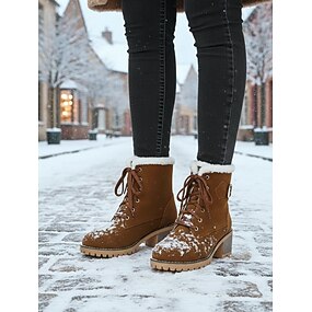 damskie zimowe buty zamszowe na wysokim obcasie – sznurowane buty z futrzaną podszewką i grubym obcasem na śnieg i zimną pogodę