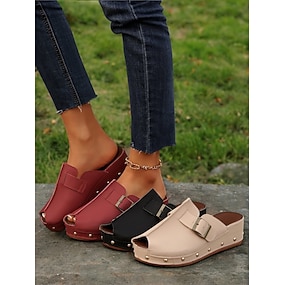damskie sandały na koturnie z odkrytymi palcami, paskami ze sprzączką i ćwiekami – wygodne sandały wsuwane na co dzień i na letnie wyjścia