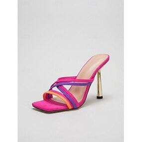 Damskie, wielokolorowe, pasiaste sandały na wysokim obcasie – nowoczesne, kwadratowe czółenka na wieczorne wyjścia do kurortu i na koktajle &letnie kluby nocne