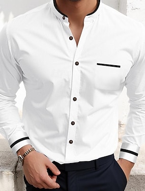 Męskie Koszula Koszule eleganckie Nieżelazna koszula Koszula z kołnierzykiem Równina Biznes Codzienny Czarny Biały Żółty Wino Długi rękaw Kołnierzyk chiński Lato Wiosna Odzież