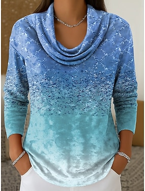 Damskie Podkoszulek Kieszeń Nadruk Ombre Graficzny Zabytkowe Moda Elegancki Długi rękaw Półgolf Zwykłe topy Codzienny Wyjściowe Weekend Niebieski Rumiany róż Zielony Wiosna Jesień Zima