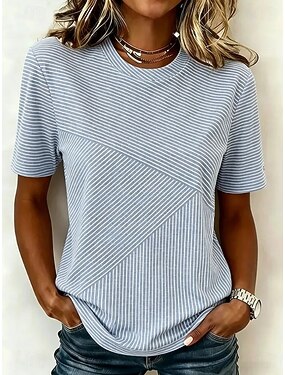 Damskie Podkoszulek Nadruk Prążki Graficzny Geometryczny Elegancki Klasyczny Codzienny Krótki rękaw Półgolf Zwykłe topy Codzienny Niebieski Lato Wiosna