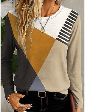 Damskie Podkoszulek Nadruk Graficzny Geometryczny Kolorowy blok Zabytkowe Elegancki Klasyczny Długi rękaw Półgolf Okrągły dekolt Zwykłe topy Codzienny Czarny Wiosna Jesień Zima