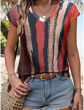 Damskie Podkoszulek Bezrękawnik Nadruk Ombre Graficzny Geometryczny Elegancki Klasyczny Codzienny Bez rękawów Krótki rękaw W serek Zwykłe topy Codzienny Czarny Żółty Czerwony Lato Wiosna