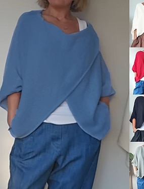 Damskie Bluzka Z marszczeniami Jednokolorowe Elegancki Codzienny Długi rękaw Asymetryczna Zwykłe topy Codzienny Czarny Biały Czerwony Khaki Wiosna Jesień