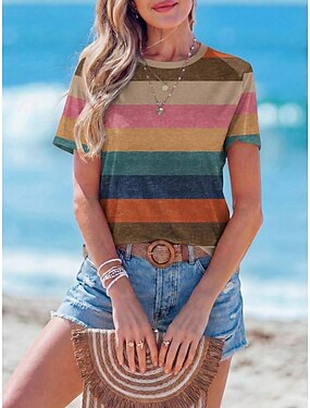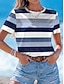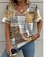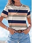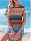 Damskie Podkoszulek Nadruk Prążki Graficzny Geometryczny Zabytkowe Elegancki Klasyczny Krótki rękaw Półgolf Okrągły dekolt Zwykłe topy Codzienny Niebieski Rumiany róż Żółtobrązowy Lato Wiosna