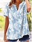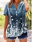 Damskie Podkoszulek Kwiaty Graficzny Rośliny Elegancki Klasyczny Krótki rękaw W serek Zwykłe topy Codzienny Niebieski Czarny Biały Pomarańczowy Lato Wiosna