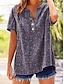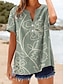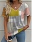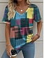 Damskie Podkoszulek Nadruk Graficzny Panterka Geometryczny Zabytkowe Elegancki Codzienny Krótki rękaw W serek Zwykłe topy Codzienny Niebieski Żółty Brązowy Lato Wiosna