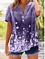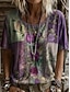 Damskie Podkoszulek Nadruk Kwiaty Graficzny Zabytkowe Elegancki Codzienny Krótki rękaw Półgolf Okrągły dekolt Zwykłe topy Codzienny Fioletowy Zielony Lato Wiosna