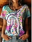 Damskie Podkoszulek Kwiaty Graficzny Rośliny Elegancki Klasyczny Krótki rękaw W serek Zwykłe topy Codzienny Niebieski Rumiany róż Fioletowy Zielony Lato Wiosna