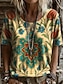 Festiwal Muzyczny Damskie Podkoszulek Nadruk Kwiaty Graficzny Rośliny Zabytkowe Elegancki Codzienny Krótki rękaw Półgolf Okrągły dekolt Długie topy Codzienny Żółty Rumiany róż Lato Wiosna