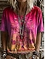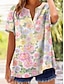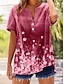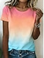 Damskie Podkoszulek Nadruk Kwiaty Graficzny Gradient Moda Elegancki Klasyczny Krótki rękaw Półgolf Długie topy Codzienny Weekend Rumiany róż Lato Wiosna