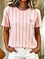 Damskie Podkoszulek Nadruk Prążki Graficzny Geometryczny Elegancki Klasyczny Codzienny Krótki rękaw Półgolf Zwykłe topy Codzienny Rumiany róż Lato Wiosna