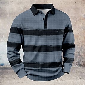Męskie Poziome paski Koszulki polo waflowe Polo do rugby Koszulki polo do rugby Długi rękaw Koszulki polo Klapa Odzież sportowa Codzienny Szkoła Athleisure Dzienne zużycie Druk 3D Wiosna Jesień Zima