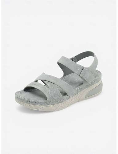Damskie szare, wygodne sandały z podparciem łuku stopy – lekkie, amortyzowane sandały z paskiem na kostce, miękkie, codzienne buty do podróży, na zakupy i spacery na świeżym powietrzu &codzienne