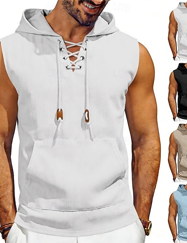 Męskie Podkoszulek Koszulka Bez rękawów Kaptur Lato Wiosna Jednokolorowe Moda miejska Elegancki Sportowy Ściągana na sznurek Kaptur Codzienny Na zewnątrz Urlop Biały Czarny Khaki Top Tee dla mężczyzn