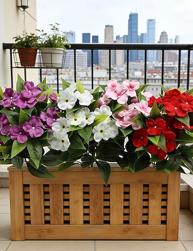 6 wiązek sztucznych kwiatów niecierpka do użytku na zewnątrz, wielokolorowe sztuczne kwiaty z jedwabiu do dekoracji na wiosnę i lato, odporne na promieniowanie UV sztuczne rośliny z tworzywa