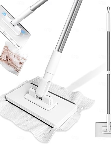 Mop do kurzu jednorazowego użytku bezdotykowy z 2 ściereczkami wielokrotnego użytku, mini mop z funkcją zamiatania na mokro i na sucho, płaski mop do kurzu z zatrzaskiem i uchwytem do małych