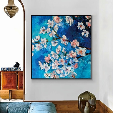 Obraz olejny ręcznie malowane ściany sztuki nowoczesne abstrakcyjne niebieski tekstury kwiaty dekoracji wnętrz wystrój walcowane płótno bez ramki nierozciągnięte