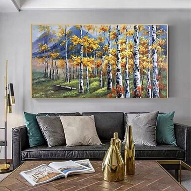 Ręcznie robiony oryginalny obraz olejny z lasu brzozowego na płótnie ściennym abstrakcyjne drzewo krajobraz malarstwo do wystroju domu z rozciągniętą ramą/bez wewnętrznego malowania ramy