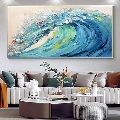 ręcznie malowany duży obraz olejny z pejzażem morskim sztuka ścienna ocean nadmorski obraz niebieski krajobraz obraz ręcznie malowany obraz olejny na płótnie sztuka z wystrojem domu gotowa do